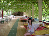 第八天:乘車赴吐魯番,遊覽漢武帝時斯所建的「高昌故城」(坐驢車進去、宛若沙漠、依約可見講堂)、遠近聞名的「葡萄溝」(吃葡萄喝葡萄酒)、「坎兒井」(井水清涼、買圍巾)、「火焰山腹地方佛宮」(風沙大且熱,有一火焰山氣),晚乘車赴敦煌。
